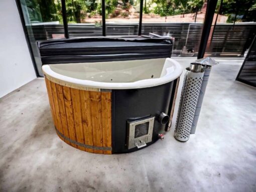 LUX IN SÓZHATÓ 5 személyes INTEGRÁLT KÁLYHÁS PRÉMIUM AKRIL dézsafürdő szürke vagy fehér betéttel
