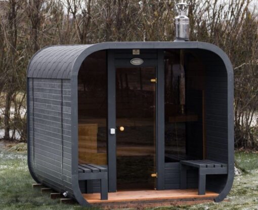 2,3 x 2,3 méter alapterület, 2,1 méter teljes magasság, Harvia Cilindro 9 KW elektromos kályhával (3 fázis), SZIBÉRIAI LUCFENYŐ, 10 cm szigetelt oldalfalak, A padló és a tető vastagsága 5 cm, Tetején fekete bitumen zsindely alatta lemezzel, LED világítás a padok alatt, Kivehető második padló, fekete éger és nyárfa padokkal, 8 mm vastag panoráma ablak, Üvegajtó, Kérhető fatüzelésű kályhával is (felára 100 000 FT), MODERN SZAUNA ELEKTROMOS KÁLYHÁVAL